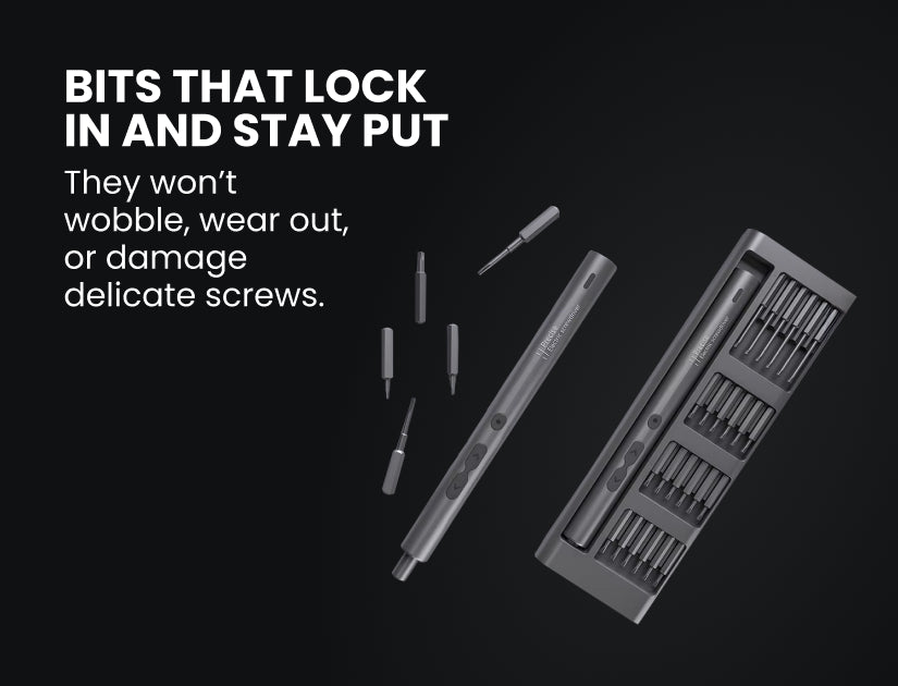 A curated set of durable, magnetic bits covers everything from Phillips and slotted to Torx and hex. Secure, smooth, and versatile.